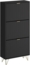 Der Vicco Schuhschrank Helge in Schwarz bietet mit seinen kompakten Maßen von 60 x 128,5 x 23,5 cm (BxHxT) ausreichend Platz für Ihre Schuhe und sorgt für Ordnung im Flur. Hergestellt aus robuster Spanplatte und ergänzt durch Metall, ist er nicht nur funktional, sondern auch ein ansprechendes Möbelstück. Mit einem Gewicht von 23,8 kg ist er stabil und leicht zu montieren.