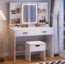 | Lieferumfang | 1x Schminktisch, 1x Spiegel, 2x Schublade, 4x Ablagefach, 1x Schrank, 9x Schmuckhaken |