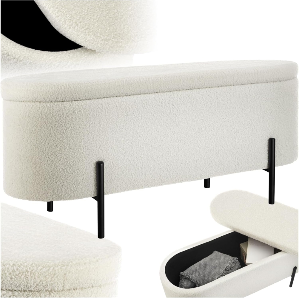 tectake Bank Sitzbank Lanja, gepolstert, mit Bouclé-Stoff und Stauraum, Bequeme Polsterung mit hochdichter Schaumstofffüllung