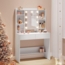Vasagle Schminktisch mit LED-Lichterkette, einstellbare Helligkeit, Holzspanplatte wolkenweiß, 40 x 90 x 144,7 cm