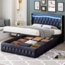 Dieses Polsterbett mit einer Liegefläche von 140x200 cm vereint luxuriösen Stil und praktische Funktionalität. Der weiche Samtbezug und das großzügig gepolsterte Kopfteil sorgen für hohen Sitz- und Liegekomfort. Mit einem integrierten hydraulischen Liftsystem bietet das Bett einen geräumigen Stauraum, ideal für Bettwäsche und Kissen. Die stufenlos anpassbare LED-Beleuchtung am Kopfteil schafft eine gemütliche Atmosphäre. Die robuste Holz- und Metallkonstruktion garantiert Stabilität und Langlebigkeit.