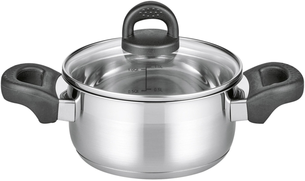 Der ELO Bratentopf Turmalin ist ein hochwertiger Bratentopf aus Edelstahl 18/8. Mit einem Durchmesser von 16 cm und einem Kapsel-Sandwich-Boden mit Aluminium-Kern sorgt er für eine gleichmäßige Wärmeverteilung. Die zylindrische Form mit Abgießrand und die innen hochglanzpolierte Oberfläche machen das Kochen und Servieren zum Kinderspiel. Der integrierte Volumenskala ermöglicht eine einfache Dosierung der Zutaten und das integrierte Öl-Dosier-System sorgt für eine gesunde Zubereitung. Der Bratentopf ist außen satiniert mit einem hochglanzpolierten De Ko-Rand und verfügt über rutschfeste schwarze Kunststoffgriffe mit Edelstahlflammenschutz. Der hochgewölbte Glasdeckel mit stoßfestem Edelstahlrand und Kunststoffknopf ermöglicht eine einfache Überwachung des Garvorgangs. Mit der Fingerschutzplatte und der Spülmaschineneignung ist der Bratentopf auch sicher und einfach zu reinigen. Er ist für alle Herdarten geeignet, einschließlich Induktion.
