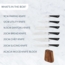 Set-Bestandteile1 Kochmesser, 1 Santokumesser, 1 Fleisch- und Schinkenmesser, 1 Brotmesser, 1 Universalmesser, 1 Schälmesser, 1 Messerblock