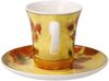 Vincent van Gogh war ein verzweifelter Mensch, doch ein besessener Künstler, unerreicht in seiner Genialität - eine Ausnahmeerscheinung - wie auch seine Gemälde, die voller vibrierender Vitalität von innen heraus zu strahlen scheinen. Espressotasse - Sonnenblumen, mit Echtgoldauflage Um die Brillanz der Farben und die Goldauflage zu schonen, ist Spülen per Hand mit mildem Reinigungsmittel empfehlenswert.