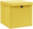 Faltbare Aufbewahrungsboxen in Gelb bieten eine praktische Lösung zur Aufbewahrung von Schals, Socken und Unterwäsche. Hergestellt aus langlebigem Vliesstoff (100 % Polyester) sind sie mit einem Deckel ausgestattet, um die Inhalte sauber zu halten. Dank der praktischen Metallöse lassen sich die Boxen leicht herausziehen. Bei Nichtgebrauch können sie platzsparend zusammengefaltet werden.