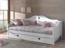 Das Bett Kamila ist ein stilvolles und funktionales Jugendbett aus hochwertigem, weiß lackiertem MDF. Mit einer Liegefläche von 90x200 cm und einer stabilen Konstruktion bietet es sowohl Komfort als auch Sicherheit. Das geschwungene Kopf- und Fußteil sowie die herzförmigen Ausschnitte verleihen dem Bett eine ansprechende Optik. Die praktische Bettschublade sorgt für zusätzlichen Stauraum und das Bett ist einfach selbst zu montieren.