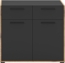 Garderobe mit System: Kommode Bueno in Korpus und Front Basalt Melamin, Abs. Nox Oak Nb. 2 Schubkästen mit Vollauszug und 2 Türen. Funktionalität: Mit großzügigem Stauraum und praktischen Schubladen bietet die Kommode eine funktionale Lösung zur Aufbewahrung von Kleidung, Accessoires und anderen Alltagsgegenständen, wodurch sie Funktionalität und Ordnung in den Raum bringt. Zeitloses Design: Unsere Garderobenmöbel sind zeitlos, modern und pflegeleicht. Die einfache Montage und die pflegeleichte Oberfläche sorgen für eine unkomplizierte Handhabung und langlebige Qualität. Nachhaltige Produktion: Zertifiziert durch FSC stehen wir für verantwortungsvolle Waldwirtschaft. Alle Möbel entsprechen den Anforderungen des Produktsicherheitsgesetzes. Hinweise: Hochwertige Materialien garantieren Langlebigkeit. Die strapazierfähigen Oberflächen sind leicht zu reinigen. Lieferung erfolgt zerlegt, ist teilweilse in mehreren Paketen verpackt und ohne Dekorationsartikel.
