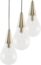 Stimmungsvolle, 3-flammige Hängelampe aus messingfarbenem Metall. Das Zusammenspiel von Formen, Farben und Materialien resultiert hier in einer stilvollen Hängeleuchte, in die man sich direkt verlieben kann. Wie drei riesige Tropfen hängen die einzelnen Leuchtelemente leicht höhenversetzt von der Decke herab. Die Lampenschirme aus klarem, transparentem Glas und die Spitzen aus messingfarbenem Metall sorgen für eine einzigartige, strahlende Beleuchtung.