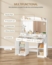 Schminktisch mit einem großen HD-Spiegel und 3 farblich einstellbaren LED-Leuchten. Ausgestattet mit 5 Schubladen und 2 Stauräumen bietet dieser Tisch reichlich Platz für Ihre Kosmetik und Accessoires. Das elegante Design in Weiß mit goldenen Griffen verleiht Ihrem Schlafzimmer einen Hauch von Luxus. Die Maße betragen 40 x 108 x 149 cm.