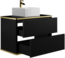Das hängende Waschbeckenunterschrank-Set KELIZA kombiniert Ästhetik und Funktionalität für Ihr Badezimmer. Mit einem eleganten Design in Schwarz und goldfarbenen Akzenten bietet es zwei geräumige Schubladen mit einem praktischen Push-to-Open-System. Die geriffelte Oberfläche verleiht Ihrem Raum einen luxuriösen Touch. Das Set umfasst zudem ein stilvolles Aufsatzwaschbecken aus Keramik.