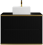 Vente-unique - Waschbeckenunterschrank hängend mit Aufsatzwaschbecken - Streifenoptik - Goldfarbene Umrandung - Schwarz - 80 cm - KELIZA