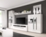 Die Wohnwand "Tulsa" ist eine moderne und funktionelle Anbauwand, die Ihrem Wohnzimmer einen stilvollen Akzent verleiht. Sie besteht aus einer Vitrine, einem Highboard, einem Lowboard und einem Wandregal. Der Korpus ist aus Faserplatte mit einer pflegeleichten laminieren Oberfläche gefertigt, während die Front aus hochglänzender Mitteldichter Faserplatte (MDF) besteht. Die Gesamtmaße der Wohnwand betragen 310 cm x 39 - 50 cm x 204 cm.