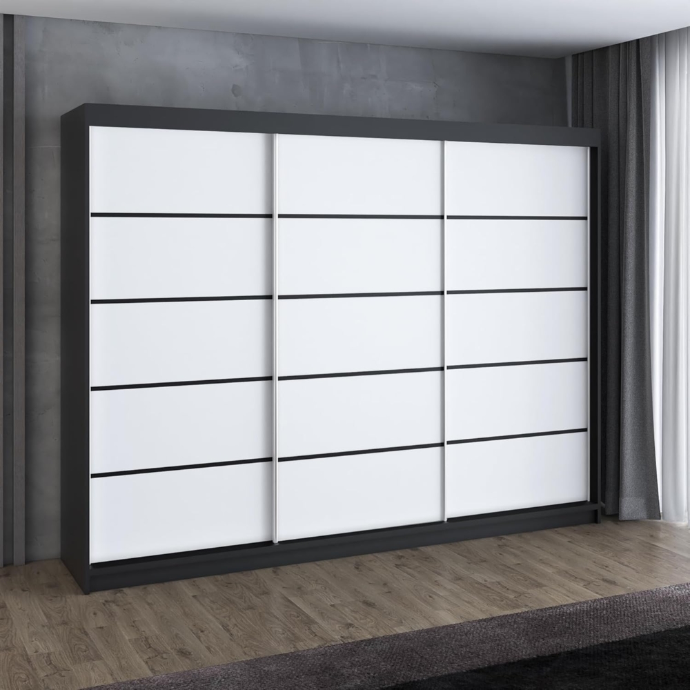 Schwebetrenschrank MES 2-trig Schrank 200 cm (mit Spiegel) Farbe: Schwarz , wei