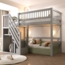 Massivholzbett, Treppe mit Aufbewahrungsschrank, Kinderbett, Jugendbett, Einzelbett, Massivholzrahmen, hohe Ausführung, Grau, 90 x 200 cm Bild 1