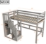Massivholzbett, Treppe mit Aufbewahrungsschrank, Kinderbett, Jugendbett, Einzelbett, Massivholzrahmen, hohe Ausführung, Grau, 90 x 200 cm