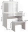 • Maße Schminktisch: 110 x 75,5 x 50 cm (BxHxT)
