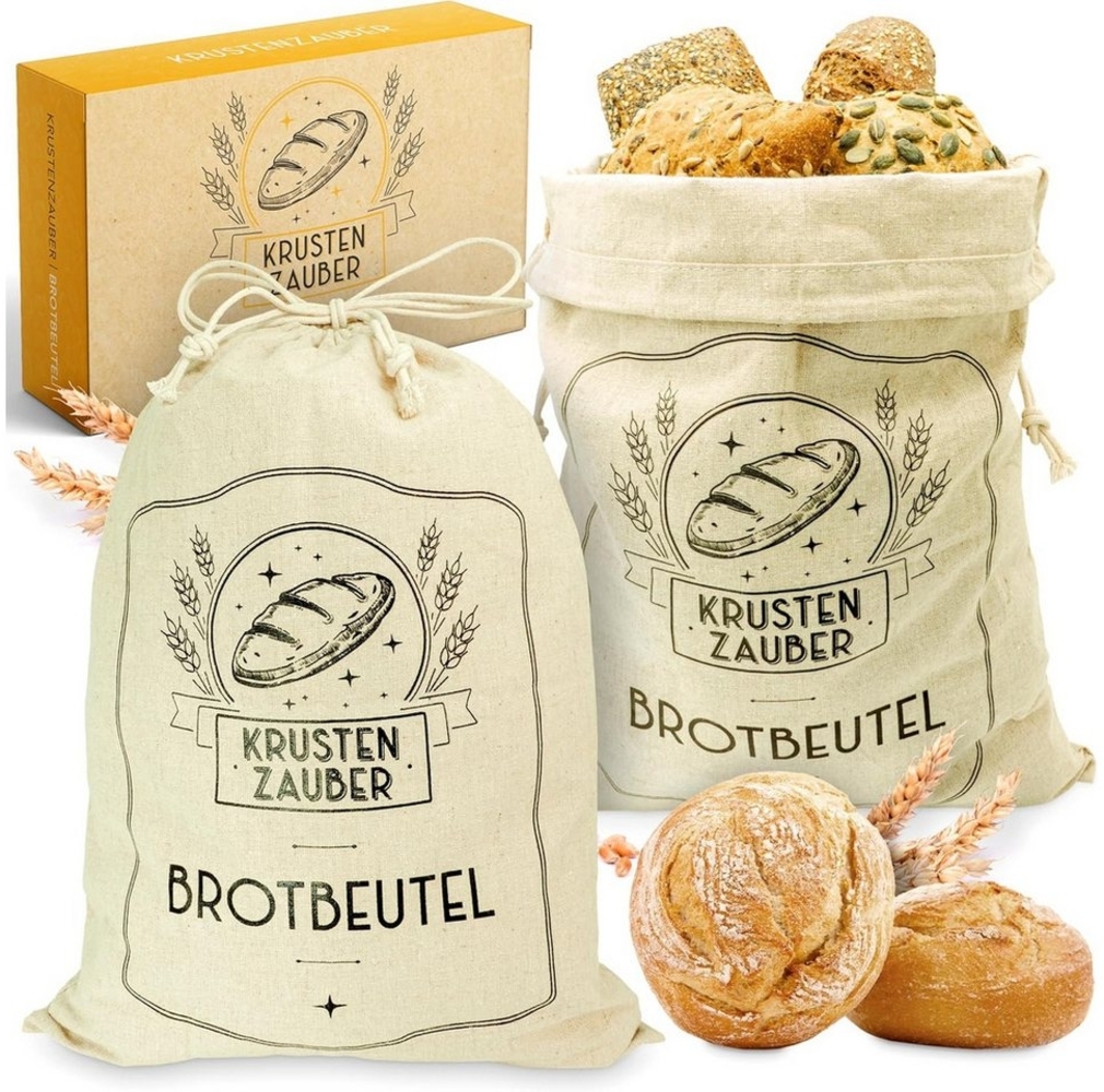 Die Krustenzauber Brottasche ist der ideale Begleiter zur Aufbewahrung von Brot und Brötchen. Mit den großzügigen Abmessungen von 40x30 cm bietet der Leinenbeutel ausreichend Platz für große Brotstücke oder mehrere Scheiben. Hergestellt aus 100% Naturmaterial schützt er Ihr Brot optimal vor dem Austrocknen und sorgt für eine längere Frische. Zudem sind die Beutel umweltfreundlich, wiederverwendbar und leicht zu reinigen.