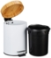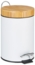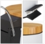 Der runde Mülleimer für das Bad mit 3 l Fassungsvermögen und Bambusdeckel ist hygienisch und komfortabel. Das rutschfeste Trittpedal ermöglicht ein freihändiges Öffnen, während die Soft-Close-Funktion für sanftes und leises Schließen sorgt. Der entnehmbare Kunststoffeimer erleichtert das Entleeren. Maße: 24,5 x 17 x 23 cm.