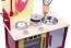 Eine wunderschöne Kinderküche aus bunt lackiertem, stabilem Schicht- und Massivholz bietet tolle Spielstunden! Eine kleine Lernuhr, Topf und Pfanne mit Spiegelei und Drehknöpfe mit Klickgeräuschen geben Raum für realistisches Spielen! Drei Küchenhelfer aus Holz sowie ein Topfhandschuh werden mit Magneten an ihrem Platz gehalten und eine Edelstahlschüssel dient dem Abwasch.