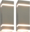 Dieses stilvolle Wandleuchten-Set strahlt ein angenehmes, nach unten gerichtetes Licht aus. Dank der Schutzart IP45 ist diese Wandlampe wetterfest und langlebig. Daher eignet sie sich hervorragend für den Einsatz im Außenbereich.