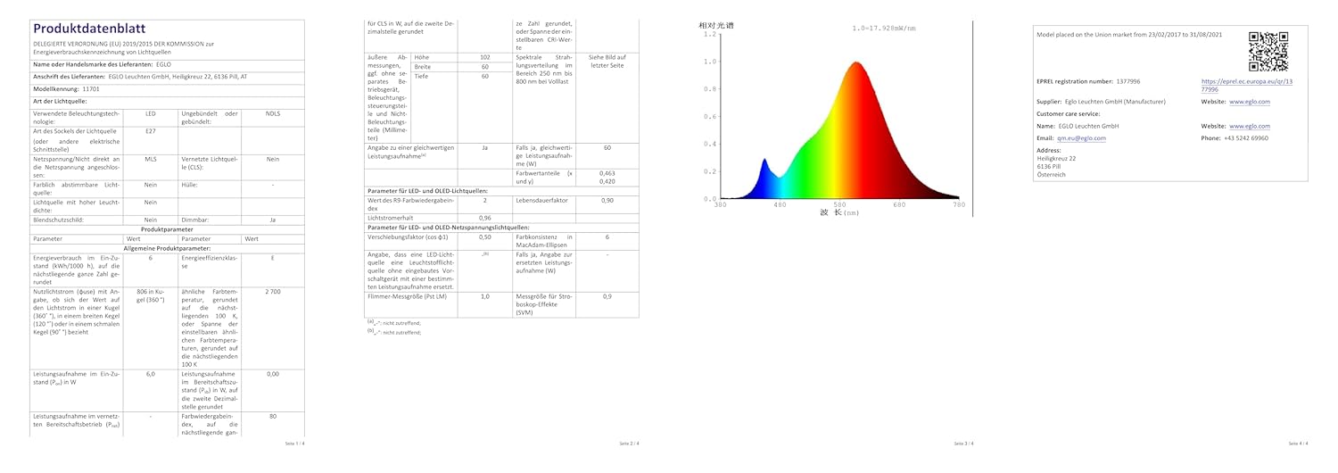 • Farbtemperatur: 2700 K (Kelvin)