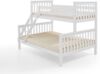 Das Etagenbett 'Kick' sorgt für mehr Spaß im Kinderzimmer. Das tolle Etagenbett mit zwei unterschiedlich großen Liegeflächen ist aus massiver Buche gefertigt und in Ausführung weiß lackiert. Die untere Liegefläche ist 140x200 cm, die obere ist 90x200 cm, für beide Liegeflächen ist der Rolllattenrost im Lieferumfang bereits enthalten.