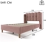 Polsterbett 90x200 cm aus Samt mit USB- und Type-C-Anschlüssen – gepolstertes Einzelbett in Rosa