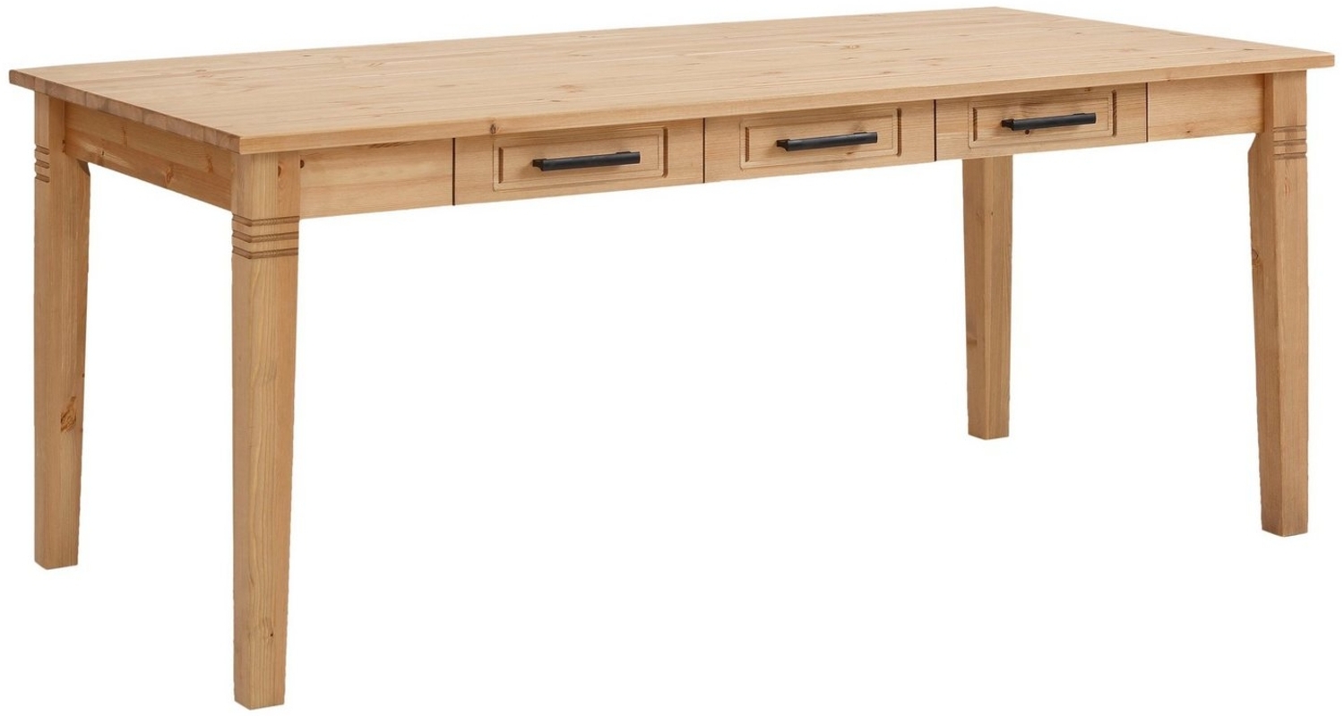 Zeitlos schön und funktional präsentiert sich der elegante Esstisch »Anabel« von Home affaire. Aus massiver Kiefer gefertigt, bietet er mit einer Breite von 180 cm ausreichend Platz für Familie und Freunde. Die sechs Schubladen unter der Tischplatte sorgen für praktischen Stauraum und ermöglichen eine ordentliche Aufbewahrung von Alltagsutensilien. Das Design im typischen Landhausstil lässt sich vielseitig kombinieren und bietet zahlreiche Gestaltungsmöglichkeiten.