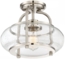 Die Deckenleuchte Trilogy vereint nostalgisches Design mit moderner Eleganz. In gebürstetem Nickel und mit klarem Saatglas ausgestattet, wird sie zum stilvollen Highlight in jedem Raum. Mit einer Höhe von 24,8 cm und einem Durchmesser von 30,5 cm ist sie ideal für verschiedene Wohnstile. Die Leuchte benötigt eine E27-Fassung und ist für LED-Glühlampen im Thomas-Edison-Stil geeignet.
