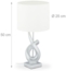 Die moderne Tischlampe in Silber mit einem eleganten, geschwungenen Fuß ist ideal für stimmungsvolle Beleuchtung im Wohnzimmer oder als gemütliche Nachttischlampe im Schlafzimmer. Der weiße Stoffschirm in Seidenoptik sorgt für angenehmes Licht und fügt sich harmonisch in verschiedene Einrichtungsstile ein. Mit einer Höhe von ca. 50 cm und einem Durchmesser von ca. 25 cm ist sie ein echter Hingucker.