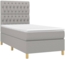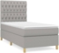 Das vidaXL Boxspringbett mit Matratze in Hellgrau (90x190 cm) aus Stoff und Härtegrad H2 [3142537] bietet maximalen Komfort für eine erholsame Nachtruhe. Der strapazierfähige Stoff ist atmungsaktiv und langlebig. Das höhenverstellbare Kopfteil dient als bequeme Rückenlehne. Die Taschenfederkernmatratze absorbiert Geräusche und Stöße, während die mittelharte Unterstützung ideal für Rücken- oder Bauchschläfer ist. Die hautfreundliche Matratzenauflage sorgt für zusätzlichen Komfort.