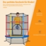 Ø 140 cm Gartentrampolin mit Sicherheitsnetz, ideal für Kinder ab 3 Jahren. Mit einer Gesamtmaße von 165 x 165 x 165 cm und einer statischen Tragkraft von bis zu 135 kg bietet es Sicherheit und Spaß. Die Höhe des Schutznetzes beträgt 121 cm, während die Sprungmatte einen Durchmesser von 140 cm hat. Das Trampolin wiegt 10,8 kg und ist aus robusten Materialien wie PVC, PE, EPE und Stahl gefertigt.