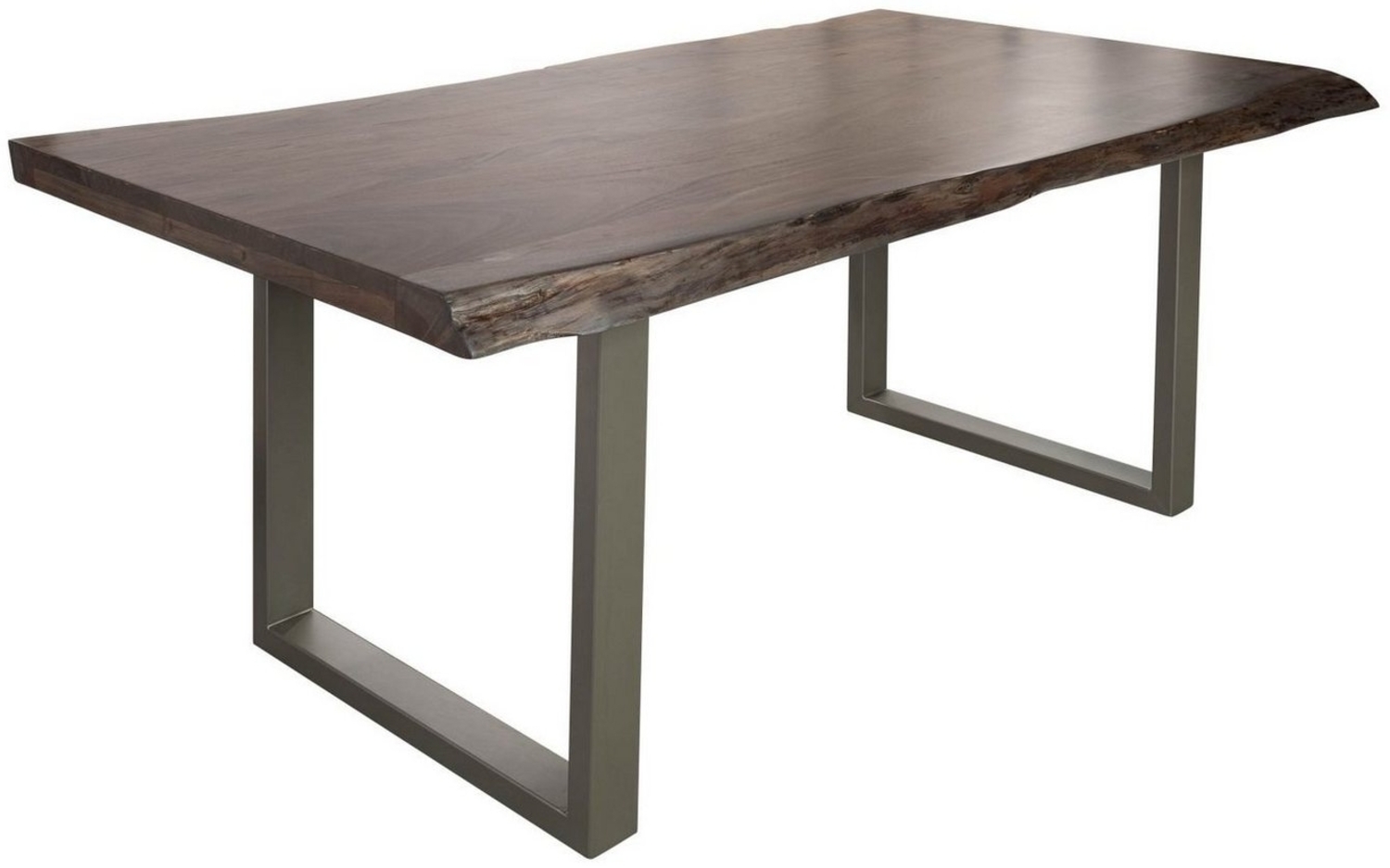 Dieser massive Baumkantentisch FREEFORM 5 aus Akazie vereint natürliche Schönheit und Langlebigkeit. Mit einer Größe von 160 x 90 x 77 cm bietet er ausreichend Platz für gesellige Runden. Die Tischplatte, die sich am natürlichen Wuchs des Baumes orientiert, verleiht dem Tisch ein einzigartiges Design. Sichtbare Unebenheiten und Teile der Außenrinde machen jedes Stück zu einem Unikat. Die silbernen U-Beine sorgen für Stabilität und einen modernen Look.