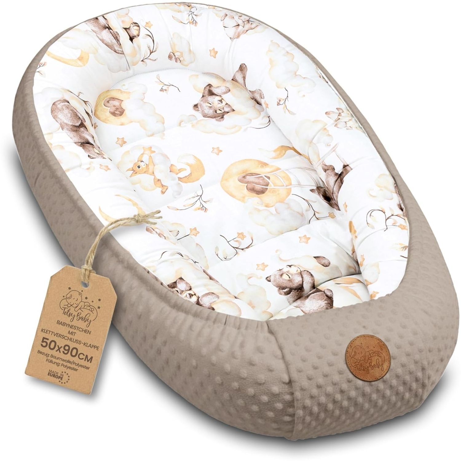 Warmes Nestchen Baby 90 x 50 cm - Kuschelnest Neugeborene ist ideal für die kalte Jahreszeit. Hergestellt aus atmungsaktiver Baumwolle und warmem Minky-Material, bietet es höchsten Komfort und ein geborgenes Gefühl. Die dicke Umrandung sorgt für ein echtes Nestgefühl, während die interessanten Farben das Kinderzimmer bereichern. Das tragbare Babynest kann vielseitig eingesetzt werden, sei es im Babybett, Gitterbett oder als Wickelunterlage.