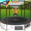 Inklusive Sprungmatte, Einstiegsleiter , Sicherheitsnetz, gepolsterten Netzpfosten und Randabdeckung