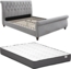 Das BALANSANO-Bett in Grau bietet mit seinem gepolsterten Kopfteil und dem eleganten Design eine harmonische Kombination aus Komfort und Stil. Die solide Struktur aus Holz, MDF und Holzspan sorgt für Robustheit, während die Liegefläche von 140 x 190 cm ausreichend Platz für zwei Personen bietet. Die mitgelieferte Standardmatratze AMBRACIE mit Taschenfederkern und Komfortschaum garantiert einen festen Liegekomfort und eine maximale Traglast von 325 kg.
