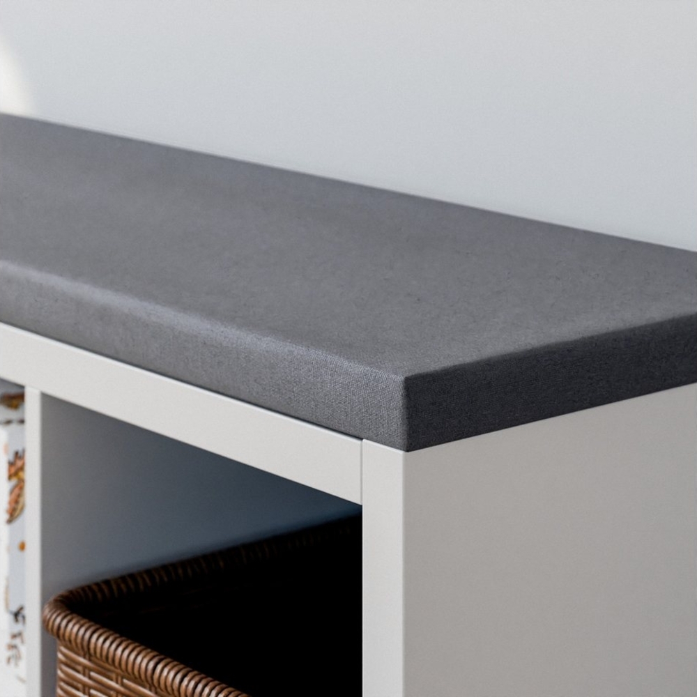 Clutter Cover Sitzkissen für Kallax Regal in Grau verwandelt Ihr Kallax Regal in eine stilvolle Sitzbank. Mit einer Polsterdicke von 4 cm bietet es optimalen Sitzkomfort und eignet sich ideal für Flur, Wohnzimmer oder Kinderzimmer. Der abnehmbare Bezug mit Reißverschluss ermöglicht eine einfache Reinigung bei 30 °C in der Waschmaschine.