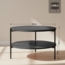 Der Couchtisch Edduma vereint modernes Design mit funktionaler Eleganz und ist der ideale Mittelpunkt für Ihr Wohnzimmer. Mit einem Durchmesser von 80 cm und einer Gesamthöhe von 40 cm bietet er ausreichend Platz für Bücher, Dekorationen oder Snacks. Das hochwertige Pappelholzfurnier und das stabile, matt-schwarze Metallgestell sorgen für eine ansprechende Optik und eine Tragkraft von bis zu 40 kg. Die zweite Tischebene bietet zusätzlichen Stauraum.