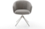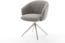 Drehstuhl Caja-Flex mit Armlehnen Bouclé Silbergrau Kreuzgestell breit Edelstahl 360° drehbar Taschenfederkern