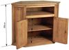 Die MiaMöbel Mexico TV Eckkommode vereint Funktionalität und rustikalen Charme im Landhausstil. Hergestellt aus massivem Pinienholz und mit Antikwachs behandelt, bietet sie ausreichend Platz für Ihren Fernseher und weitere Geräte. Die Kommode lässt sich optimal in der Ecke Ihres Wohnzimmers platzieren und überzeugt durch ihre traditionelle Handarbeit sowie die ansprechende Kassettenoptik der Türen.