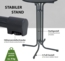 Der Fuß des Tisches ist mit einer Verstellschraube und einer gerippten Unterseite ausgestattet, um einen perfekten und stabilen Stand zu gewährleisten. Bei Bedarf lässt sich der Tisch einfach zusammenklappen und platzsparend verstauen oder transportieren.