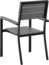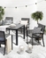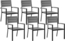 Sechs moderne Gartenstühle im Set COMO in Grau, ideal für den Innen- und Außenbereich. Die Stühle bestehen aus grauem Kunstholz und schwarzem Aluminium, bieten breiten Armlehnen für optimalen Sitzkomfort und sind stapelbar. Die strapazierfähigen Materialien sind wasser-, UV- und rostbeständig, was eine hohe Langlebigkeit garantiert.