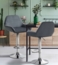 Dieser DELUKE® Barhocker im 2er Set DUBLIN überzeugt durch sein modernes und zeitloses Design in Dunkelgrau aus Samt. Die gepolsterten Rücken- und Armlehnen bieten höchsten Komfort, während die 360° drehbare Sitzfläche und die stufenlose Höhenverstellbarkeit durch eine Gasdruckfeder optimale Anpassung an jede Thekenhöhe ermöglichen. Das robuste Metallgestell mit Trompetenfuß sorgt für Stabilität und eine bequeme Fußstütze.