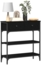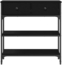 Der vidaXL Konsolentisch mit Regal in Schwarz Eichen-Optik vereint funktionale und stilistische Ansprüche. Mit den Gesamtabmessungen von 72,5 x 25 x 75 cm (L x B x H) und einem Gewicht von 14,4 kg ist er ideal für die Wandmontage. Der Tisch aus hochwertigem Schichtholz und stabilen Eisenbeinen bietet nicht nur eine ansprechende Optik, sondern auch Langlebigkeit und Stabilität. Perfekt für die Präsentation Ihrer Lieblingsstücke oder zur Aufbewahrung alltäglicher Gegenstände.