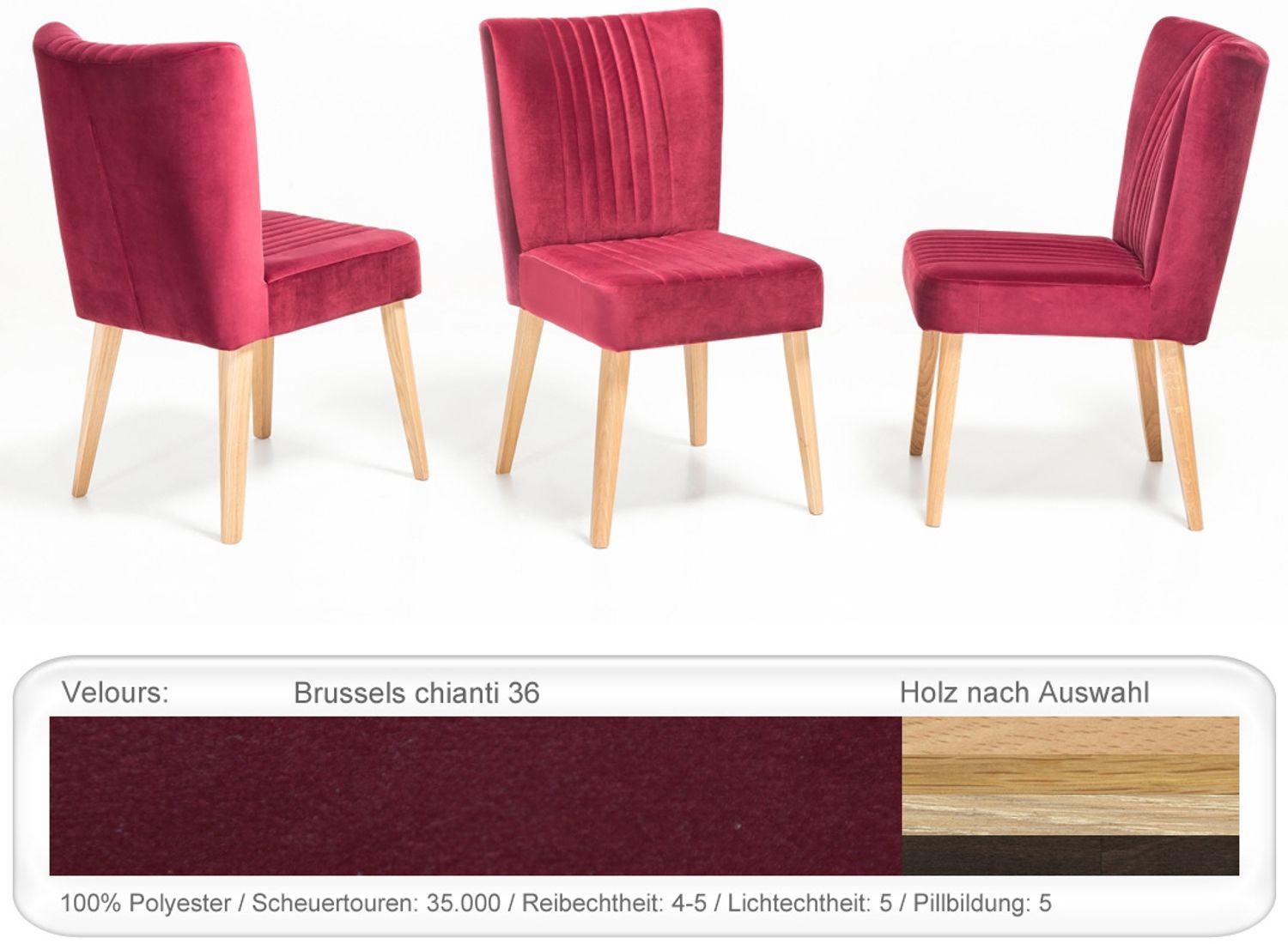 Hochwertiger Polsterstuhl Jeta im 4er-Set, gefertigt aus massivem Holz und bezogen mit Brussels Velours-Stoff. Die geschwungene Rückenlehne und die komfortable Sitzfläche bieten höchsten Sitzkomfort. Mit einer Breite von 46 cm, einer Höhe von 92 cm und einer Tiefe von 66 cm ist dieser Stuhl ideal für Ihr Esszimmer. Die Montage ist nicht erforderlich, da die Stühle komplett und standsicher geliefert werden.