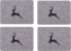 Praktische und stilvolle Platzsets aus Filz mit einem ansprechenden Hirschmotiv. Mit einer Größe von 44x32 cm bieten die 4-teilig Untersetzer ausreichend Platz für Teller, Tassen und Gläser. Das strapazierfähige und dennoch weiche Material ist pflegeleicht und feucht abwaschbar, wodurch Flecken mühelos entfernt werden können. Ideal für eine gemütliche Atmosphäre in Küche, Wohnzimmer oder Kinderzimmer.