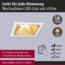 Die Paulmann 93132 LED Cole Coin Einbauleuchte vereint modernes Design mit praktischer Funktionalität. Die eckige Leuchte in Weiß-Gold matt sorgt für eine blendfreie und angenehme Beleuchtung. Mit einer Höhe von 56 mm und einer Breite sowie Tiefe von jeweils 88 mm fügt sie sich harmonisch in jede Decke ein. Dank der 3-Step-Dimmfunktion lässt sich die Lichtintensität bequem über einen herkömmlichen Lichtschalter anpassen.