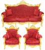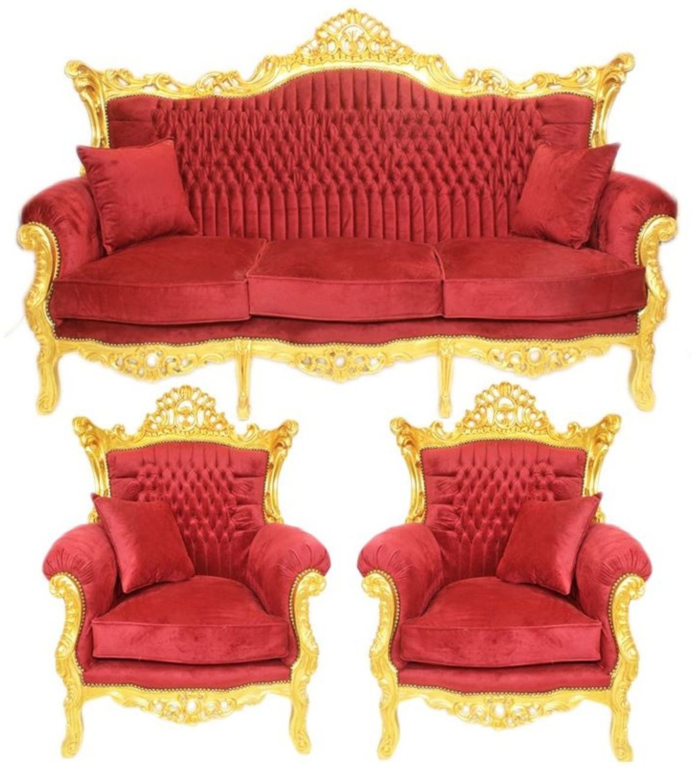 Casa Padrino Barock Wohnzimmer Set Bordeaux Samtstoff / Gold - 3er Sofa + 2 Sessel