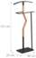 Der freistehende Herrendiener 10046884 bietet eine elegante Lösung zur faltenfreien Aufbewahrung Ihrer Kleidung. Ideal für Business-Outfits, ermöglicht er das Aufhängen von Jackett, Hemd oder Bluse über den breiten Kleiderbügel. Die gebogene Hosenstange sorgt für knitterfreie Anzughosen und bietet Platz für Krawatten. Der stilvolle Materialmix aus grauem Metall und Holzoptik macht ihn zu einem Blickfang in jedem Raum.