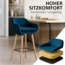 Der Barhocker Grant im 2er Set vereint modernen Stil mit optimalem Komfort. Der dick gepolsterte Sitz und die Rückenlehne sind mit einem hochwertigen Samtbezug in Blau versehen, der dem Hocker eine besondere Optik verleiht. Das stabile 4-Fuß-Gestell aus Buchenholz sorgt für Standfestigkeit, während die integrierte Fußstütze aus Metall eine bequeme Sitzposition ermöglicht. Bodenschoner schützen Ihren Fußboden vor Kratzern und erleichtern die Pflege.